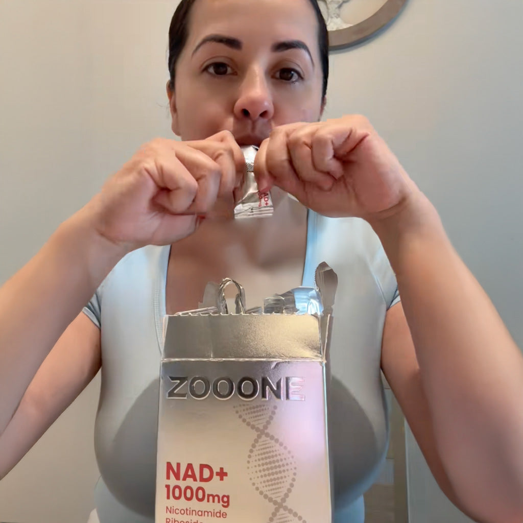“This isn’t just skincare, it’s life care. I didn’t realize how flat I’d been feeling until I got that youthful firmness back. My saggy boobs are not saggy anymore and my skin started to glow again. All I say is: ‘Liquid NAD+. Every morning. That’s it.’ Total game changer.”