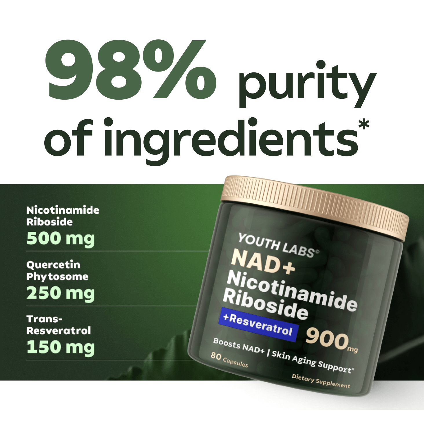 NAD+ is essential for energy and cellular repair, but research shows its levels start to decline by up to 50% as soon as you're in your 20s.